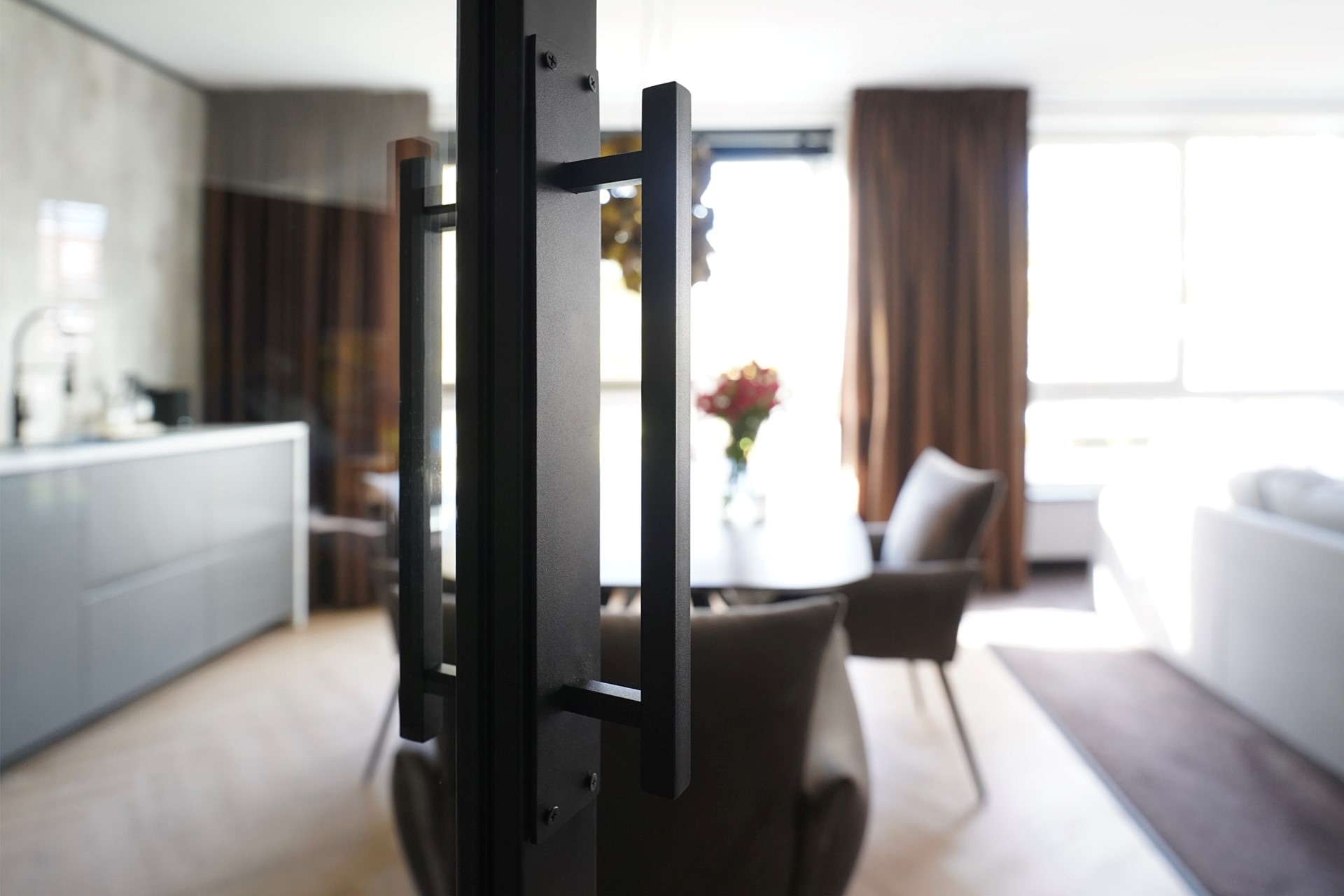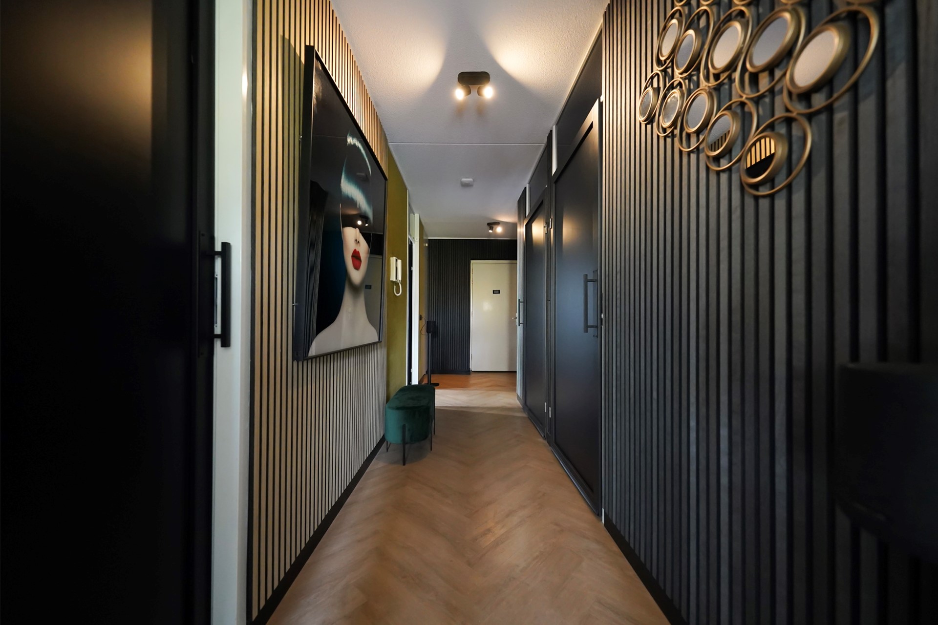Allereerst is het natuurlijk ideaal dat je jouw auto inpandig kan parkeren. Er is ook voldoende ruimte als openbare parkeerplekken rondom het gebouw voor jouw visite. Je loopt gemakkelijk van je auto zo de lift in op de trap op. De algemene entree en de portieken zijn verzorgd en fris ingericht. Deze appartementen zijn dan ook voor verschillende doelgroepen heel geschikt. Zodra ik de woning binnen kom, ervaar ik een oase van luxe en sfeer. Wauw! Wat is deze woning uniek ingericht! Mooie houten wandpanelen, binnendeuren, visgraat pvc-vloerafwerking; overal is over nagedacht!