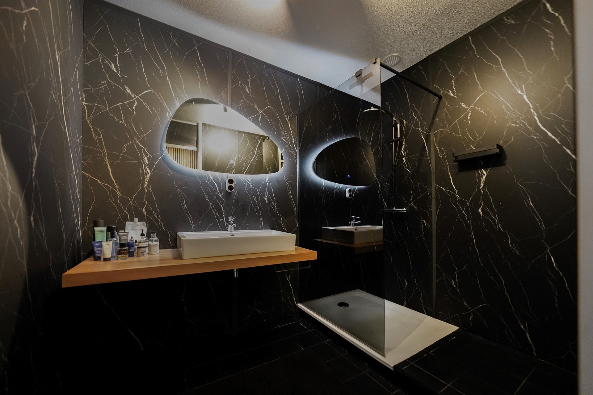 Dit fijne appartement heeft ook 2 echt ruime slaapkamers. In de ouderslaapkamer kan een groot tweepersoonsbed staan en hier is ook zeker nog een ruimte voor een eventuele kledingkast. De tweede slaapkamer is nu als kleedkamer ingericht. De badkamer is ook een fijne ruimte en circa een jaar geleden nog grotendeels gerenoveerd. Door de donkere inrichting heeft de ruimte meteen sfeer en een luxe uitstraling. Fijn is dat er nog een aparte toiletruimte en een technische ruimte aanwezig is. De technische ruimte met een ruime opstelling voor de wasmachine en de droger is ook luxe afgewerkt met mooie wandpanelen. Een appartement dat met liefde en zorg is bewoond en op zoek is naar een nieuwe bewoner!