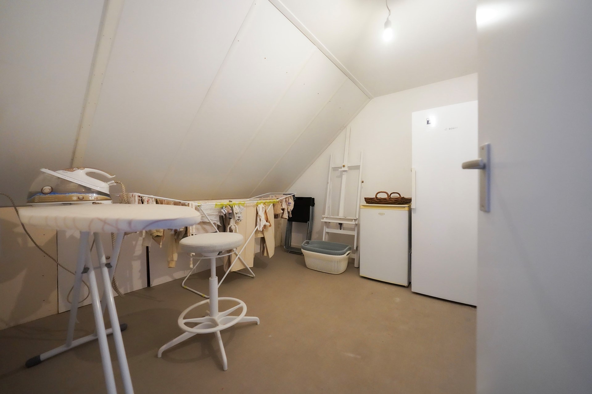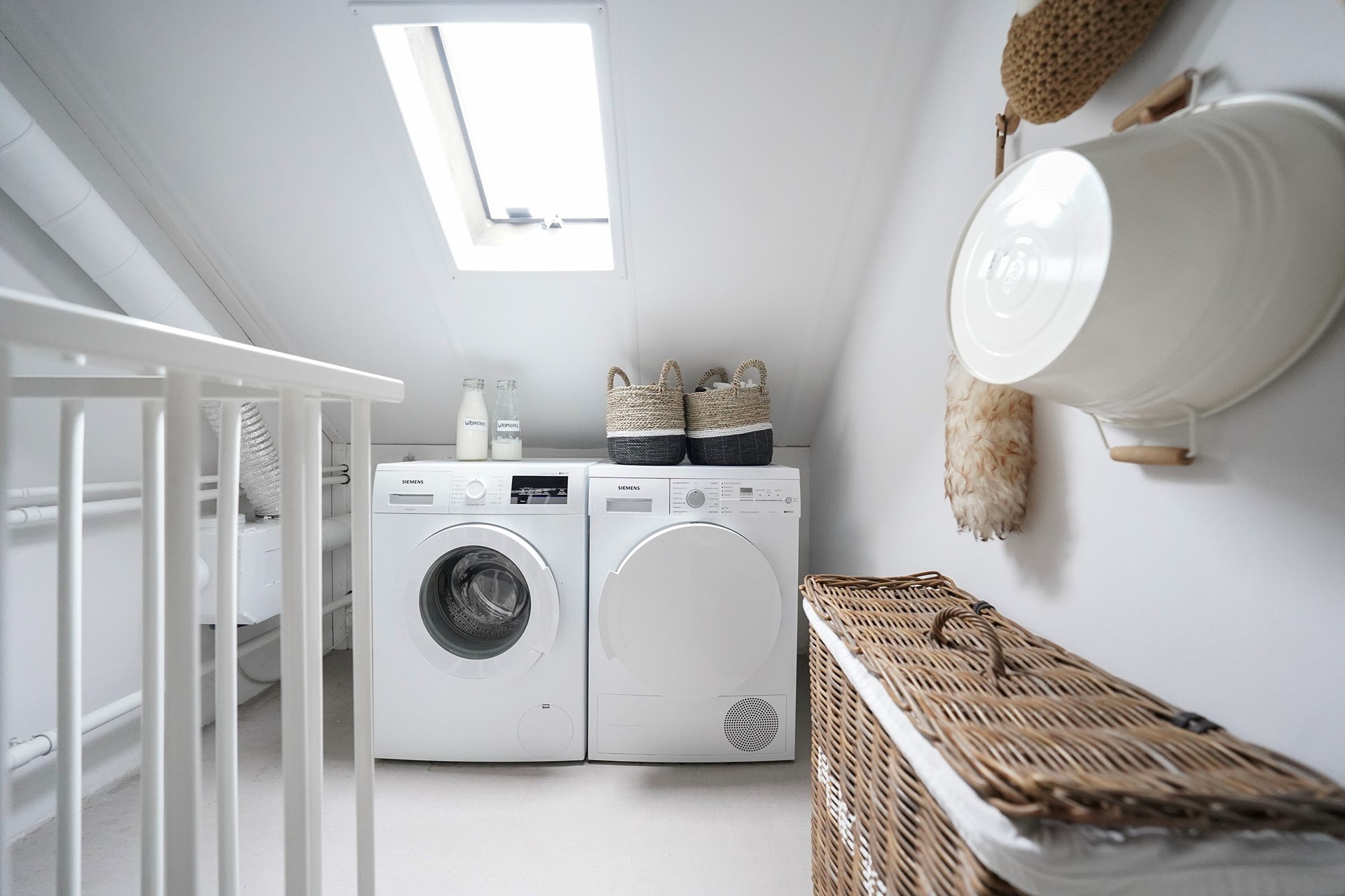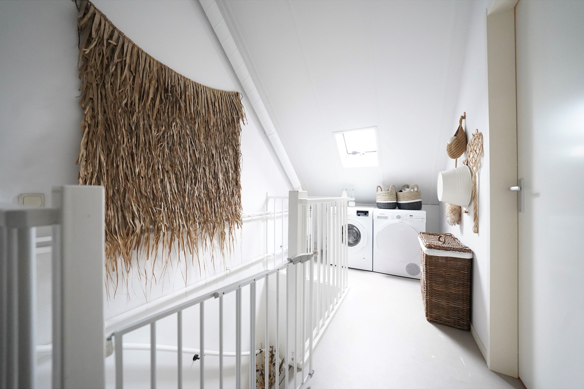 De overloop zelf is wel voorzien van een fijn dakraam en hier is ook de wasmachine en de droger gesitueerd.