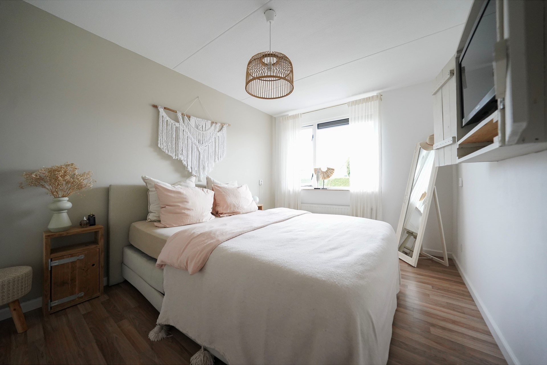 Op naar boven via een mooie trap met houten tredes en een houten trapleuning. Mooi en sfeervol! Verrassend is de ruime overloop op de eerste verdieping met ook nog eens 3 echt fijne slaapkamers. De ouderslaapkamer is echt heerlijk raam zoals je wel op de foto’s kunt zien. De kinderkamers zijn prachtig ingericht wat wellicht wel een beetje verklapt wie hier woont. De eigenaresse maakt namelijk zelf prachtige muurschilderingen! Alle kamers zijn voorzien van elektrische rolluiken. De badkamer is aan de voorzijde gelegen en is heel speels ingedeeld waardoor er ook echt ruimte is voor een inloopdouche, een ligbad, een 2e toilet en een goed wastafelmeubel. Hoe slim!