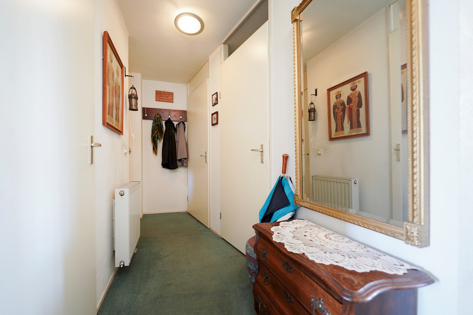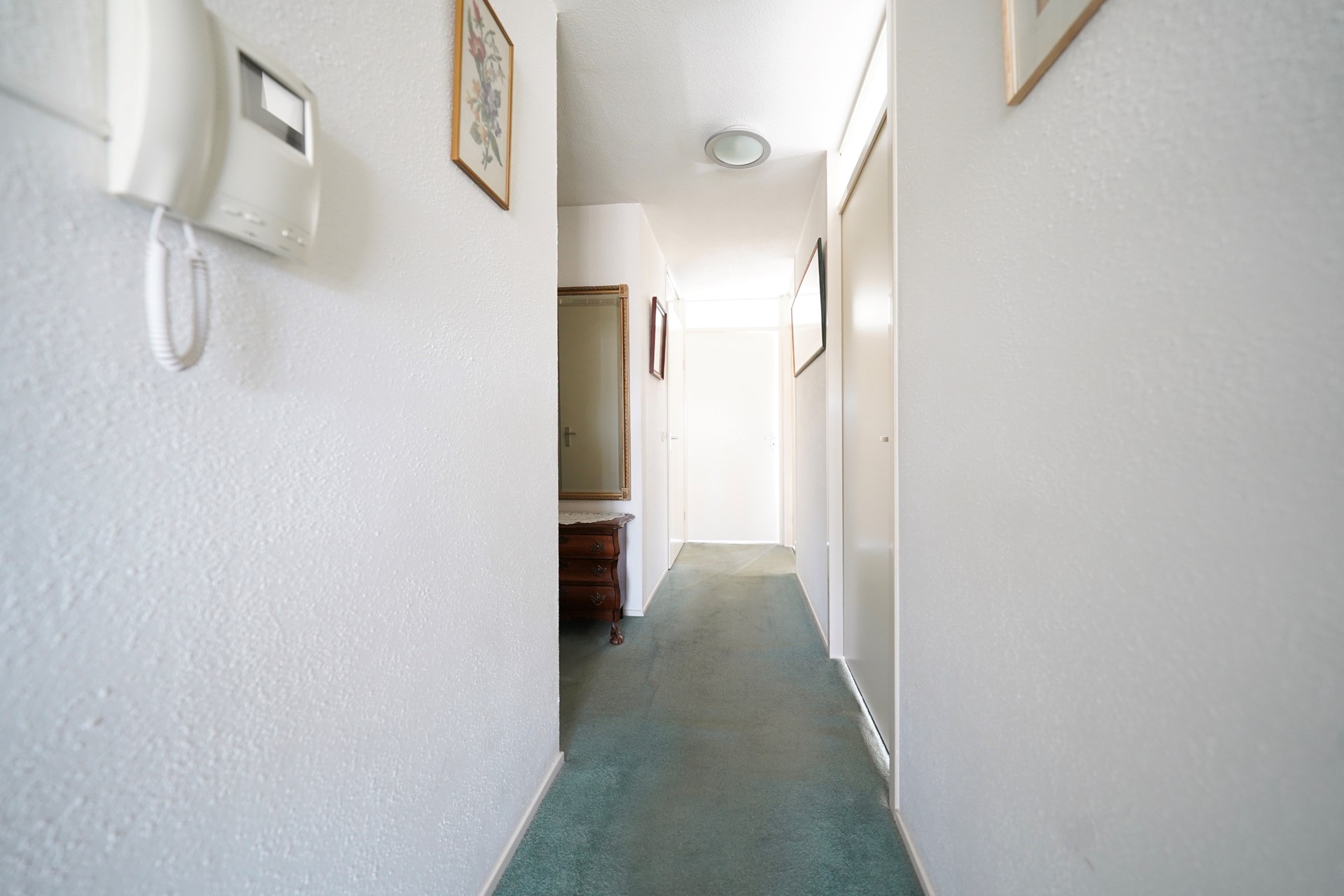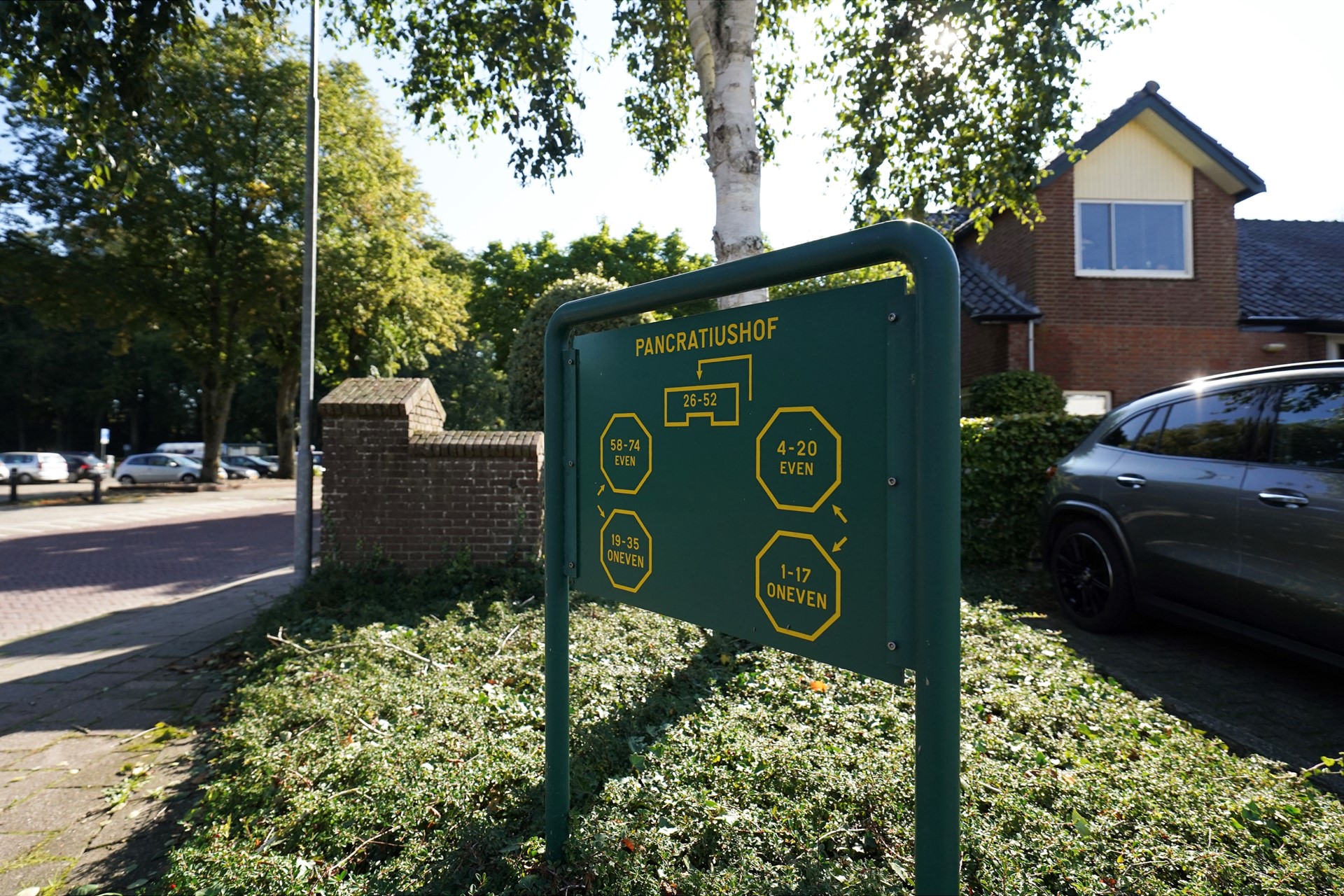 Parkeren kan gemakkelijk rondom het gebouw. Aan de Pancratiushof zijn 4 dezelfde gebouwen gelegen, ruim gesitueerd voor optimale privacy maar ook gezelligheid. Het terrein is mooi aangelegd met daarbij ook mooie beplanting. De entree van het gebouw in kwestie is ruim opgezet. U loopt zo naar binnen en eenmaal binnen kan een bezoeker aanbellen bij het juiste appartement. De deur gaat automatisch open en dan is het kiezen tussen de trap of de lift. We gaan naar de 2e verdieping en hier zijn 2 appartement gesitueerd. Heel fijn en rustig! Bij binnenkomst valt mij meteen de bijzonder indeling op. Dit is geen “standaard” appartement maar elke kamer is speels ingedeeld en heeft zijn eigen meters. De woonkamer en de keuken zijn samen een fijne, grote ruimte. U ziet op de foto’s al wel hoe leuk u dus ook hier naar buiten kijkt. De keuken is nu deels afgesloten maar dit zou u eventueel meer open kunnen maken. Vanuit de woonkamer en de keuken zijn er 3 deuren naar het terras. Dit terras is op het zuiden gelegen en is ook voorzien van buitenzonwering.