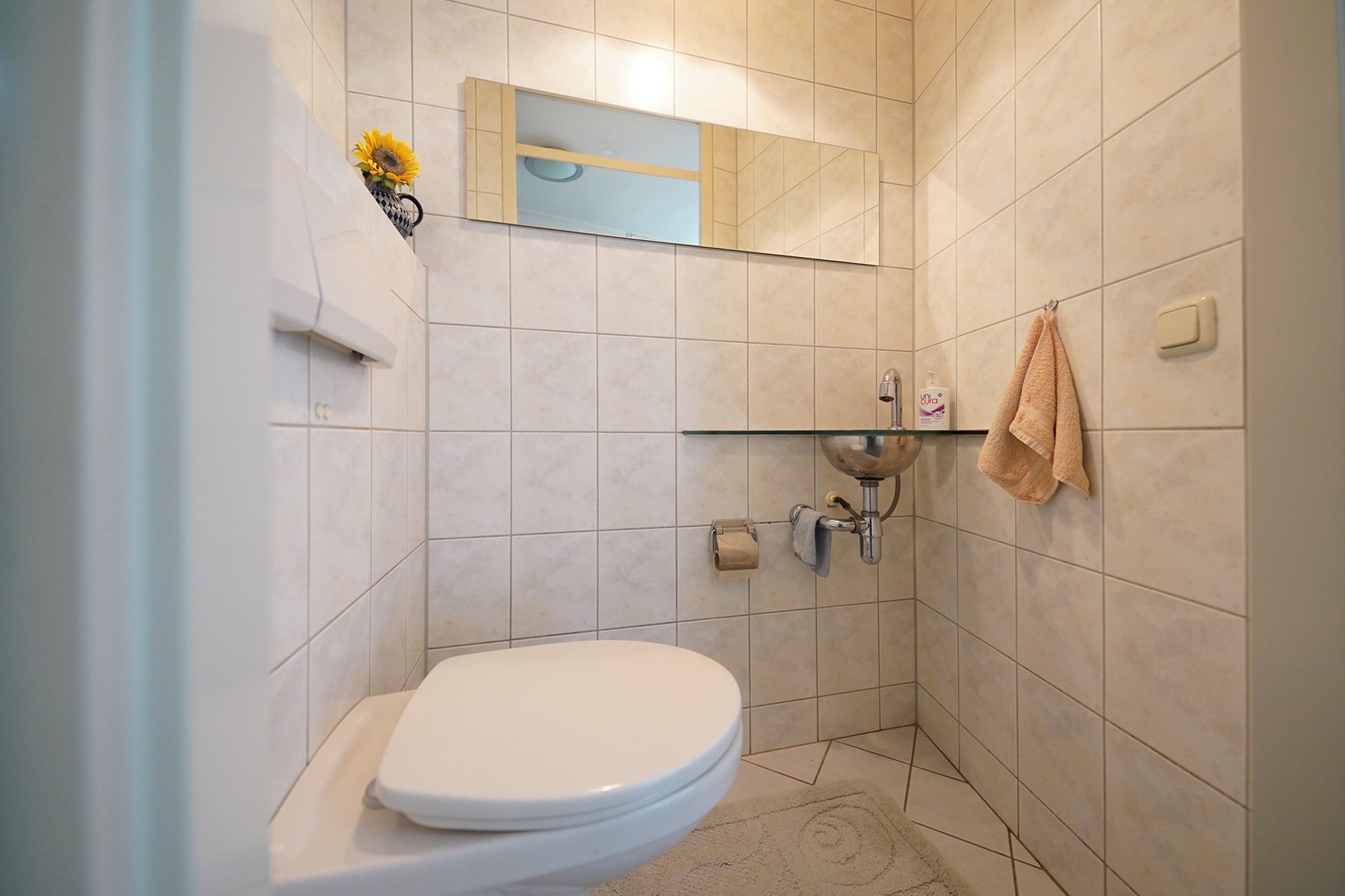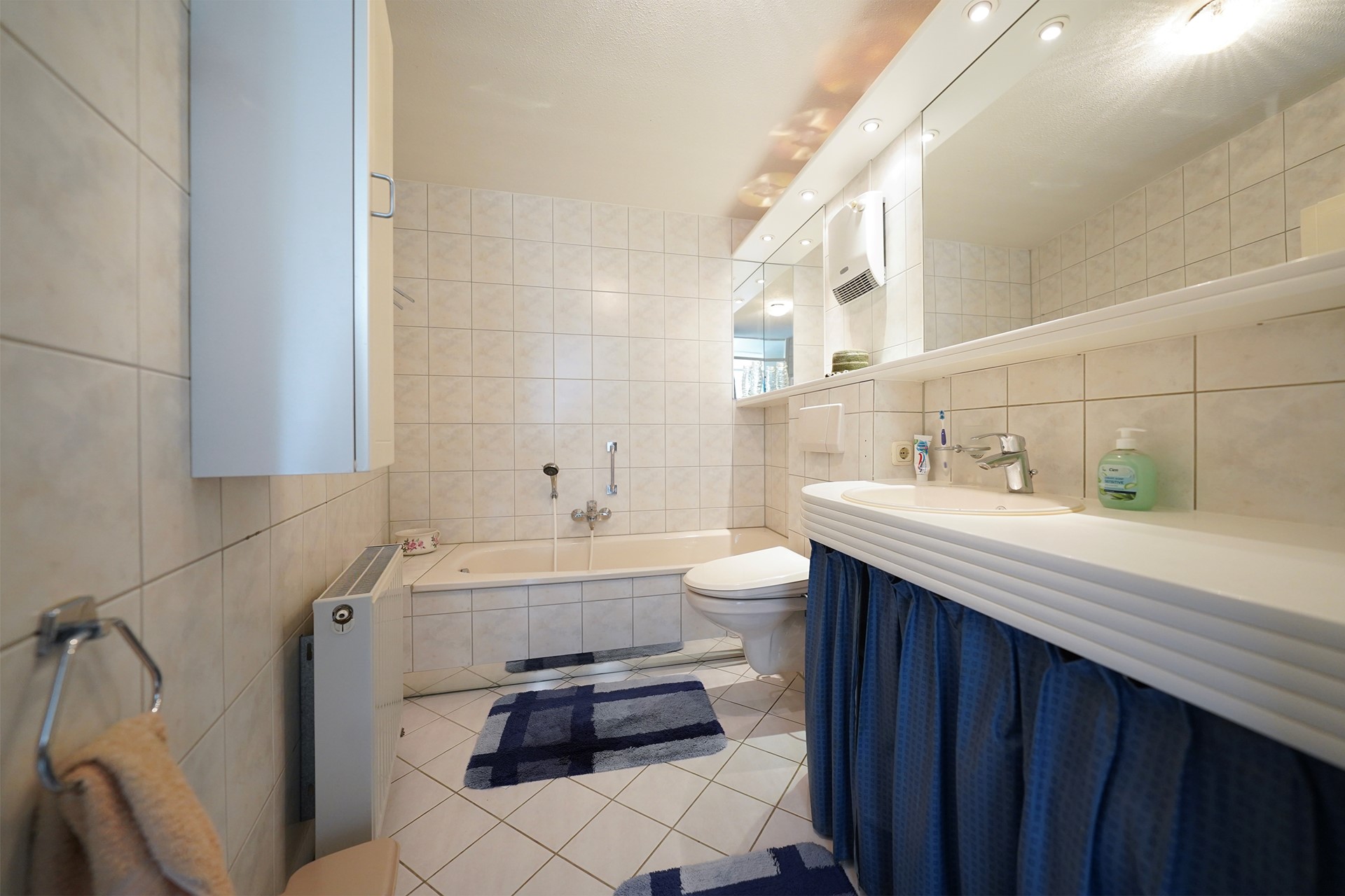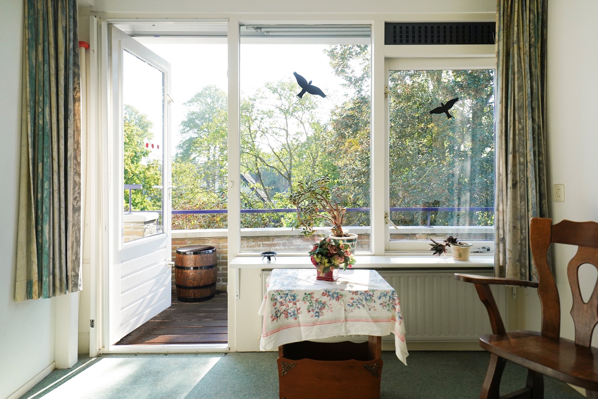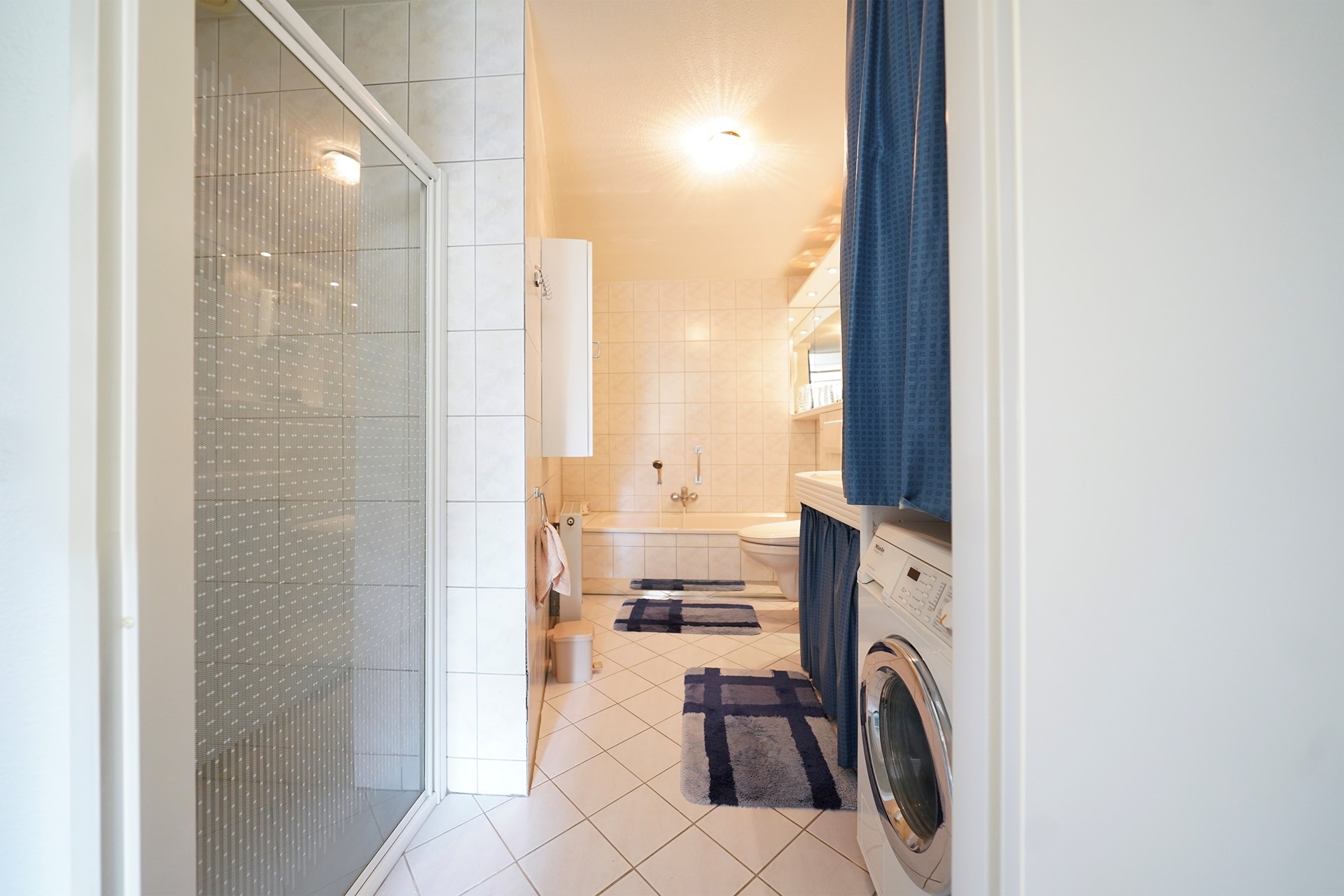 De 2e slaapkamer heeft ook een fors formaat en biedt toegang tot het terras op het oosten. De 3e kamer is ingericht als werkkamer op dit moment. Wat een sfeer en wat een heerlijke lichte kamer weer. Dan is er nog een ruime badkamer aanwezig met een douchecabine, een groot wastafelmeubel, een ligbad en een toilet. In de badkamer is ook ruimte voor een wasmachine en een droger. Er is daarnaast nog een separate toiletruimte met hangend toilet en fonteintje aanwezig.