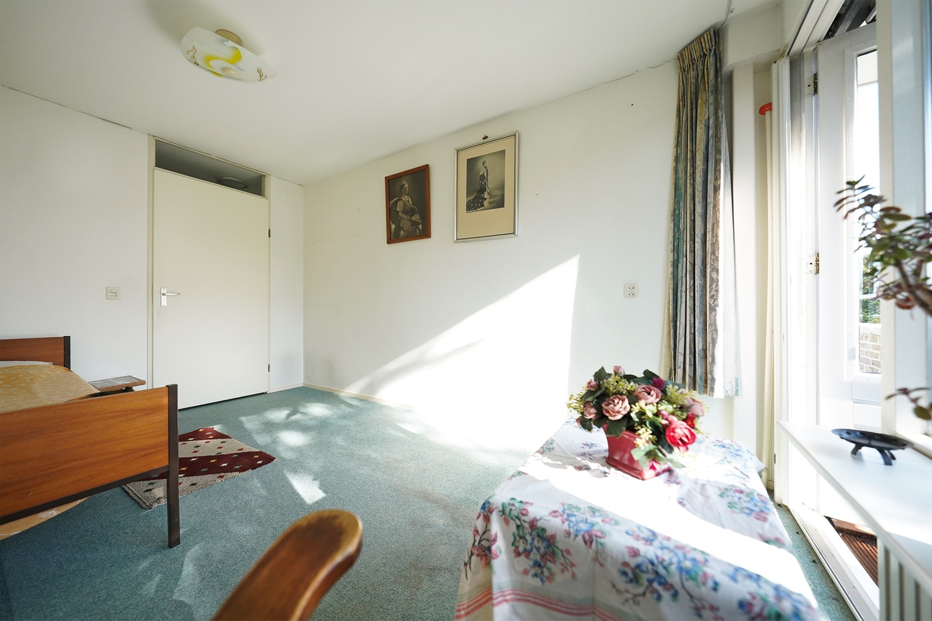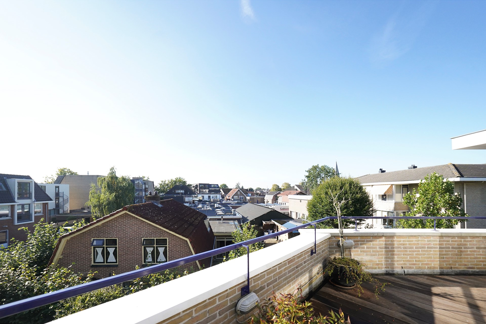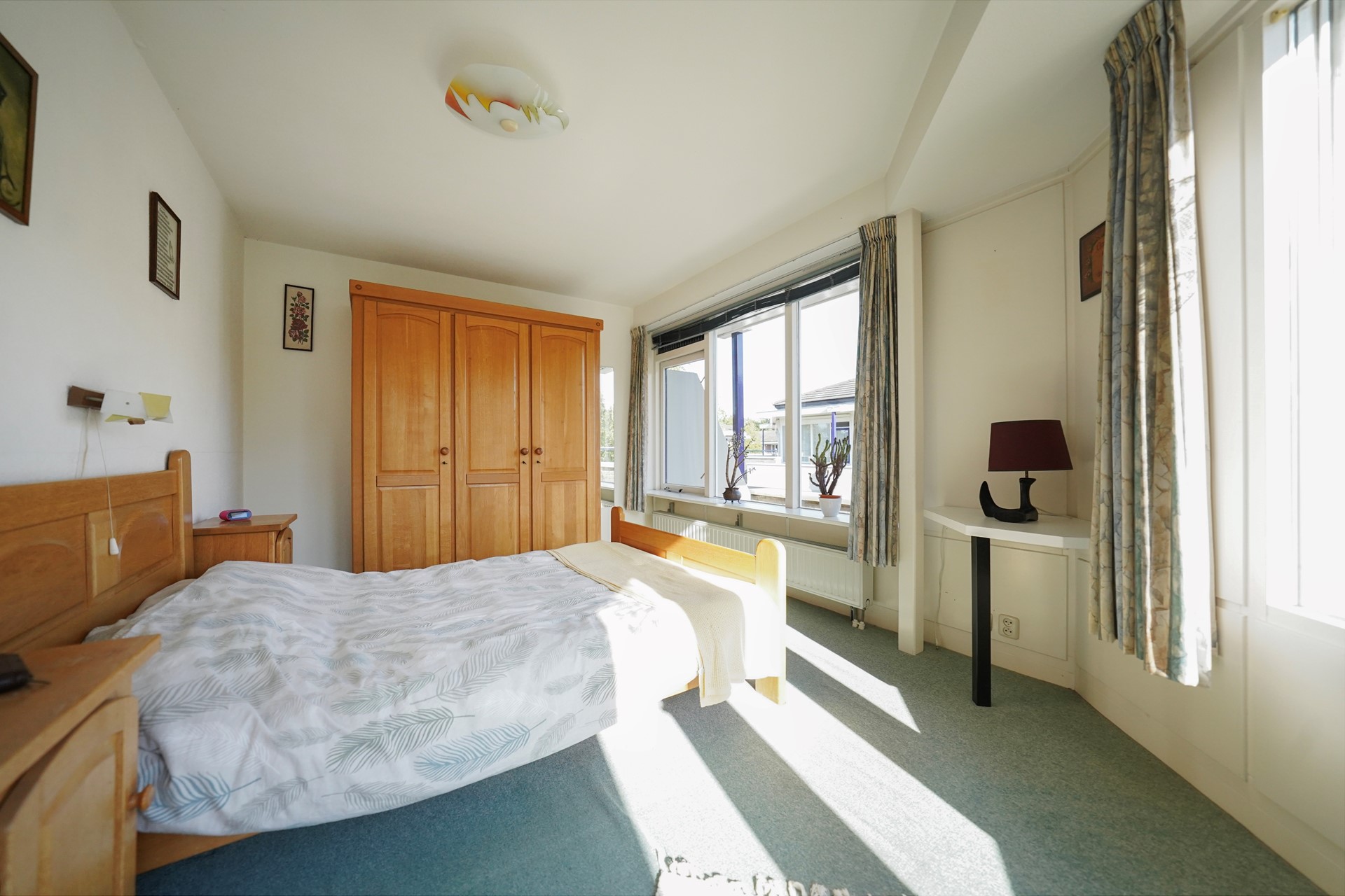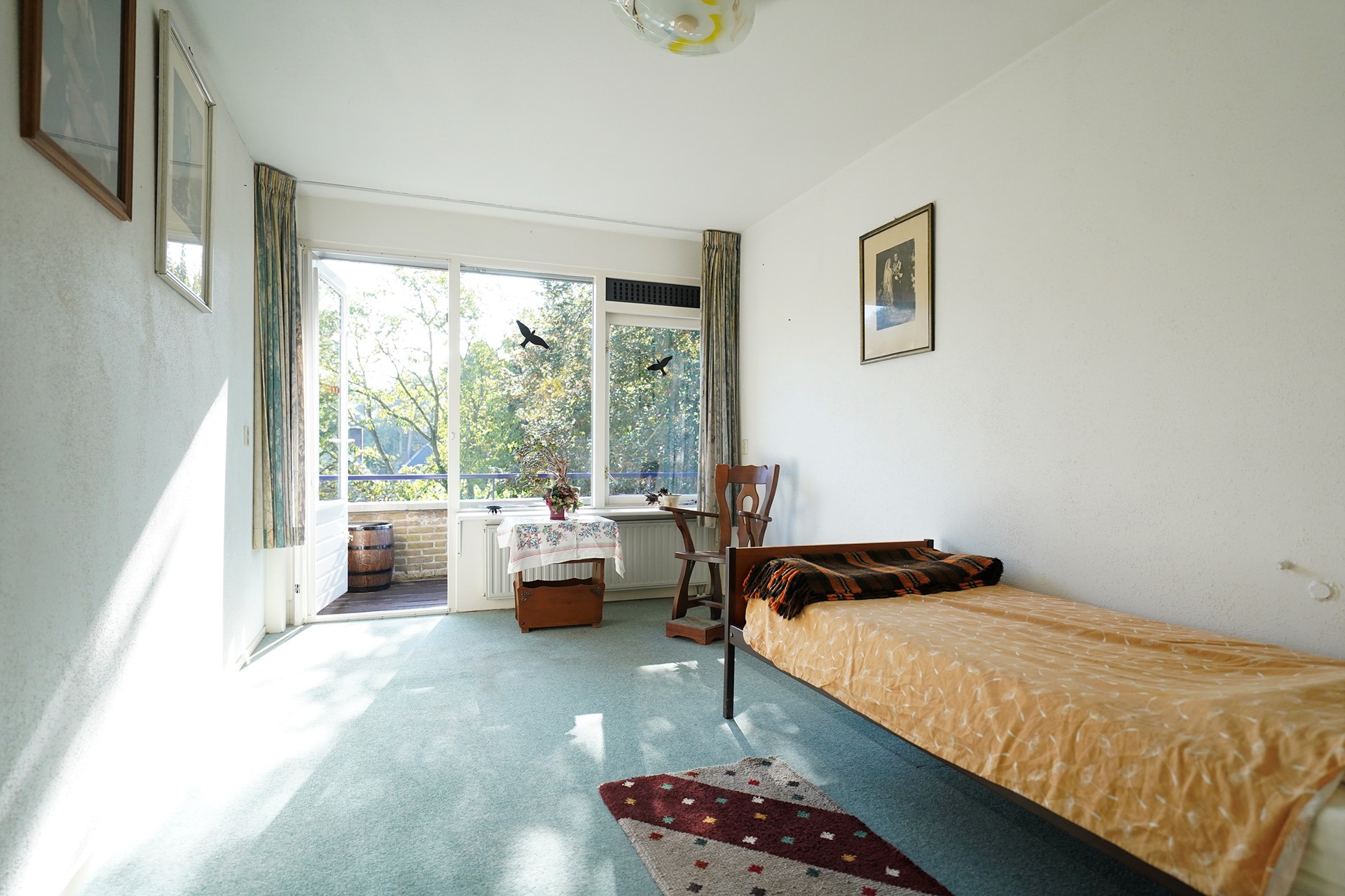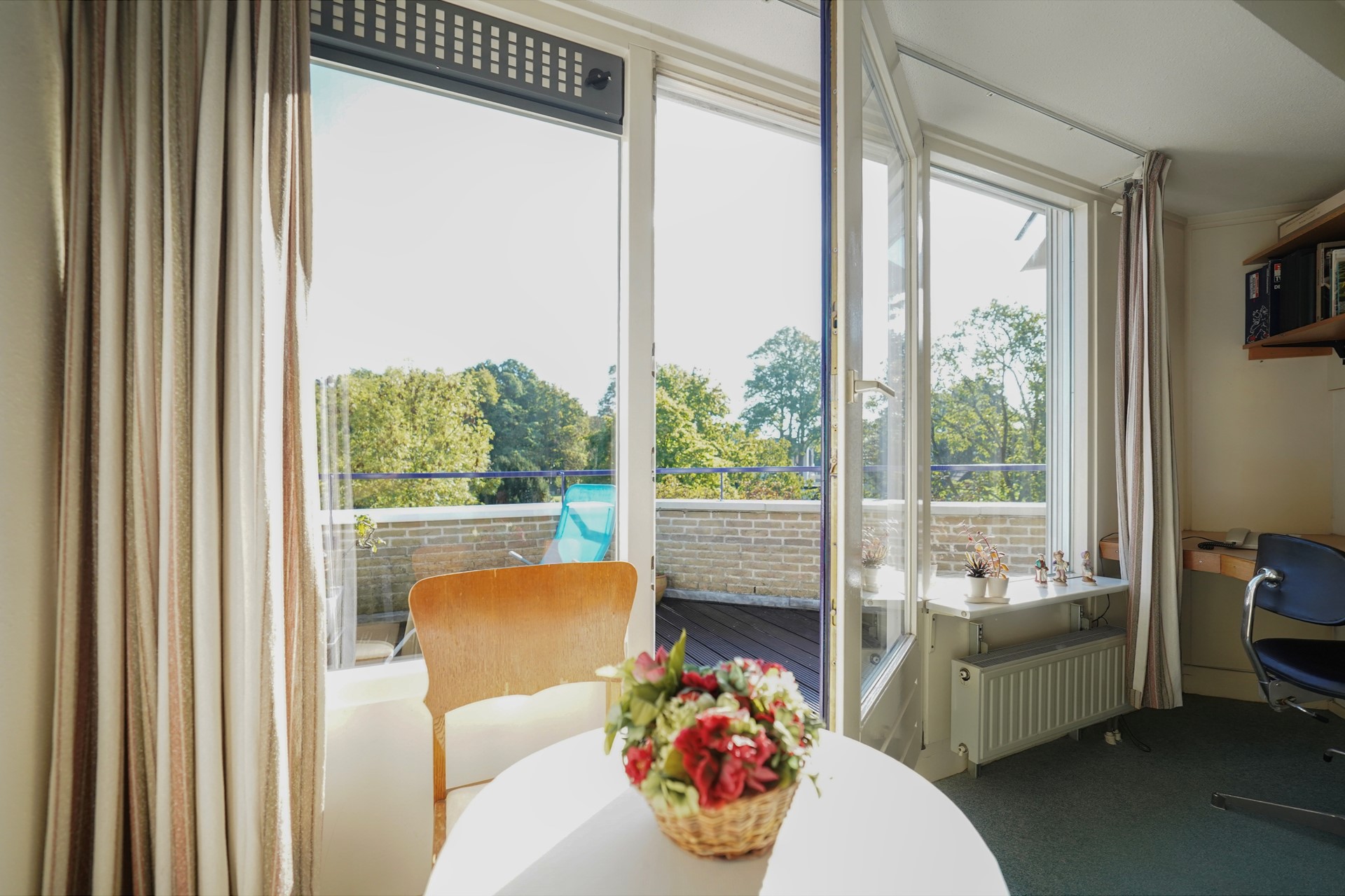 Weer terug naar de hal waar we nu aan de andere zijde de ouderslaapkamer betreden. Dit is ook weer een verrassende fijne, grote ruimte, juist meer op het noordoosten gelegen. Ook hier bevindt zich een deur naar het terras en vanaf deze zijde heeft u uitzicht op de Katholieke kerk aan de Brinkstraat. De straat is wat verder weg gelegen, dus het is rustig vertoeven op het terras. Prachtig zijn de bomen op de oostkant waardoor u ook wat schaduw heeft, maar vooral lekker groen uitzicht. Ook al woont u op de bovenste verdieping, hier kunt u ook genieten van de natuur!