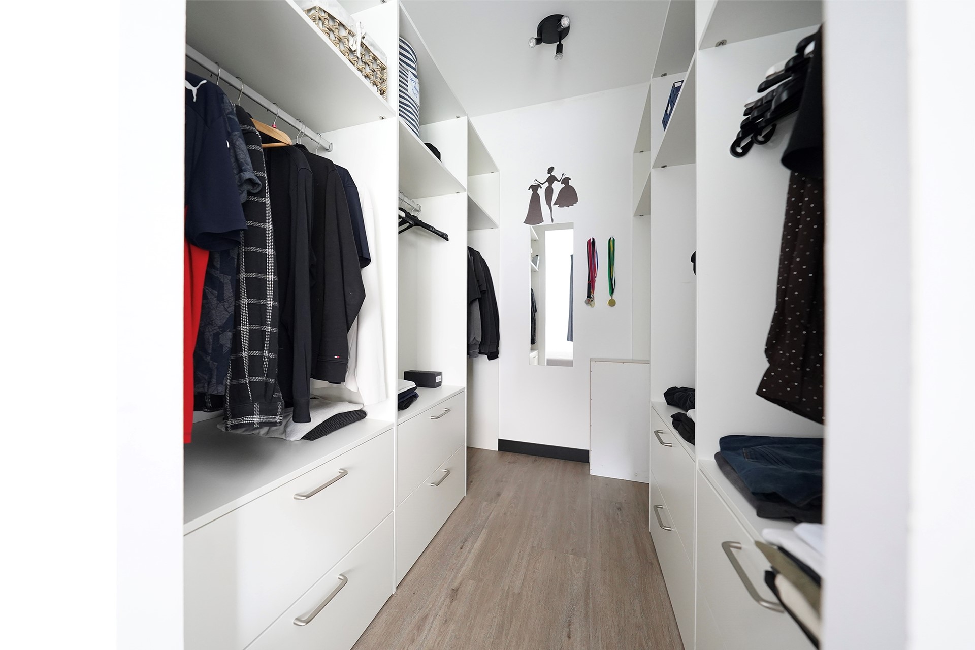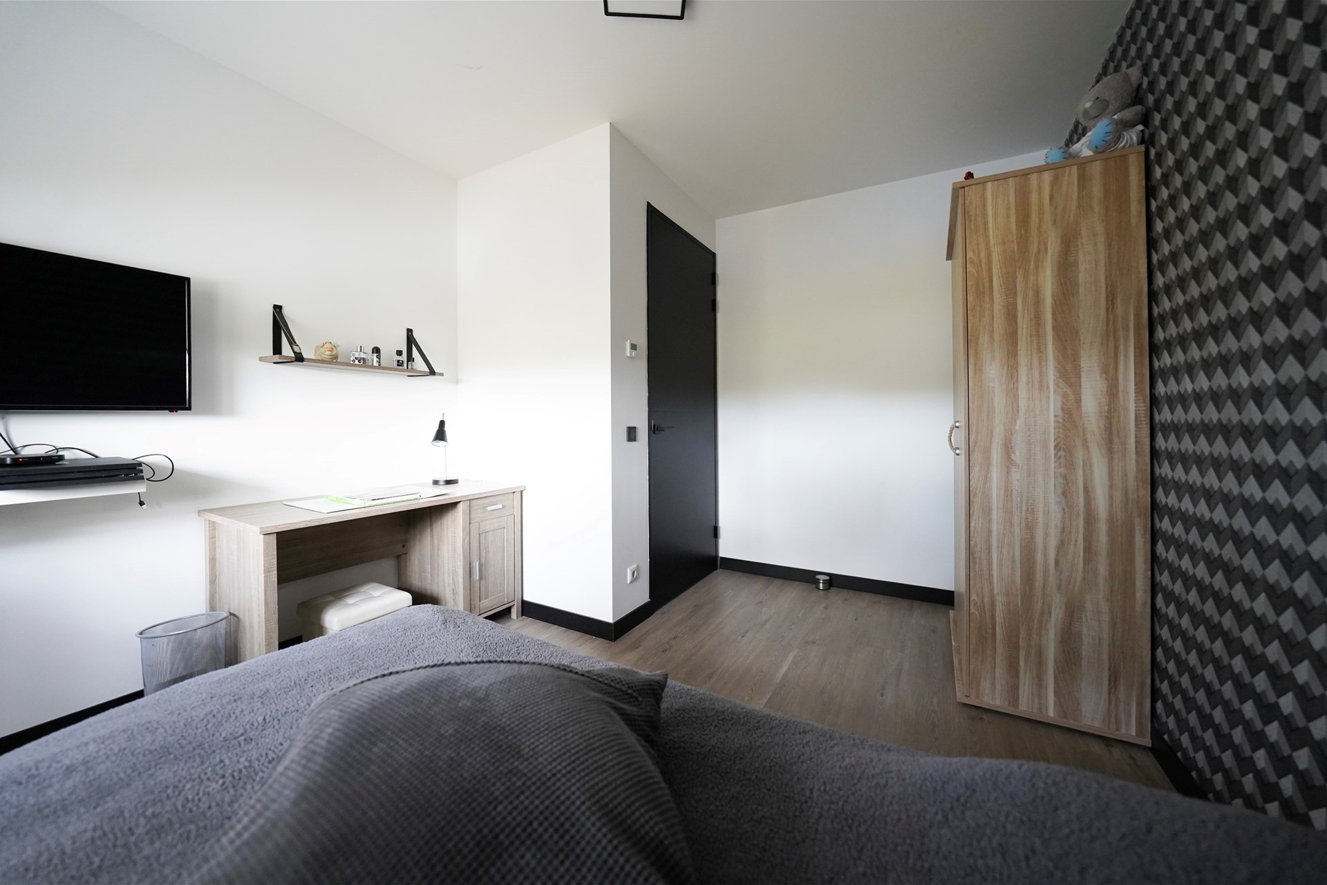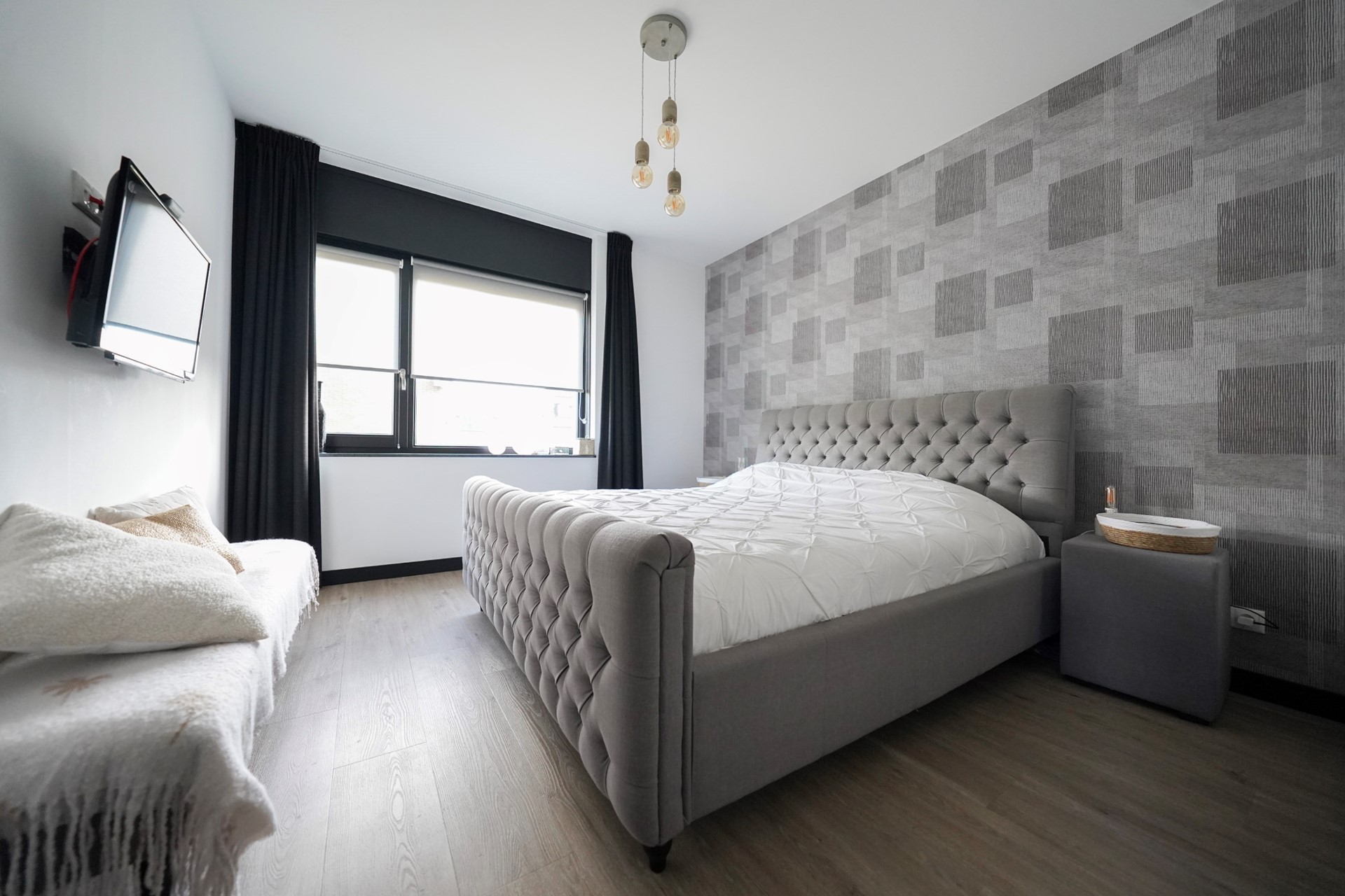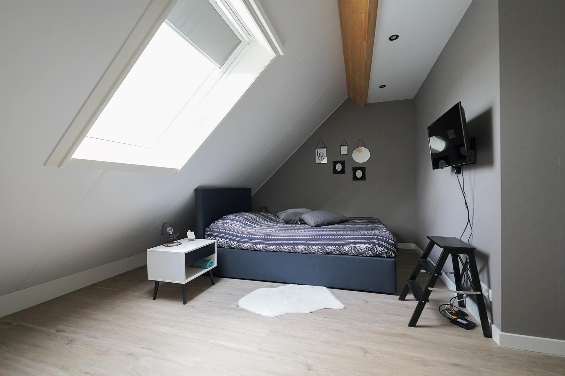 Weer via een mooie zwarte trap gaan we door naar een volwaardige 2e verdieping met ontzettend veel ruimte. Hier bevindt zich een ruime overloop waar ook de wasmachine en droger, netjes ingebouwd, zijn gesitueerd. Ook is er een enorm grote 4e slaapkamer aanwezig tevens voorzien van een inloopkast. Verder is er een machinekamer waar alle installaties zoals de warmtepomp en de boiler zijn geplaatst en zo ook fijn uit het zicht zijn.