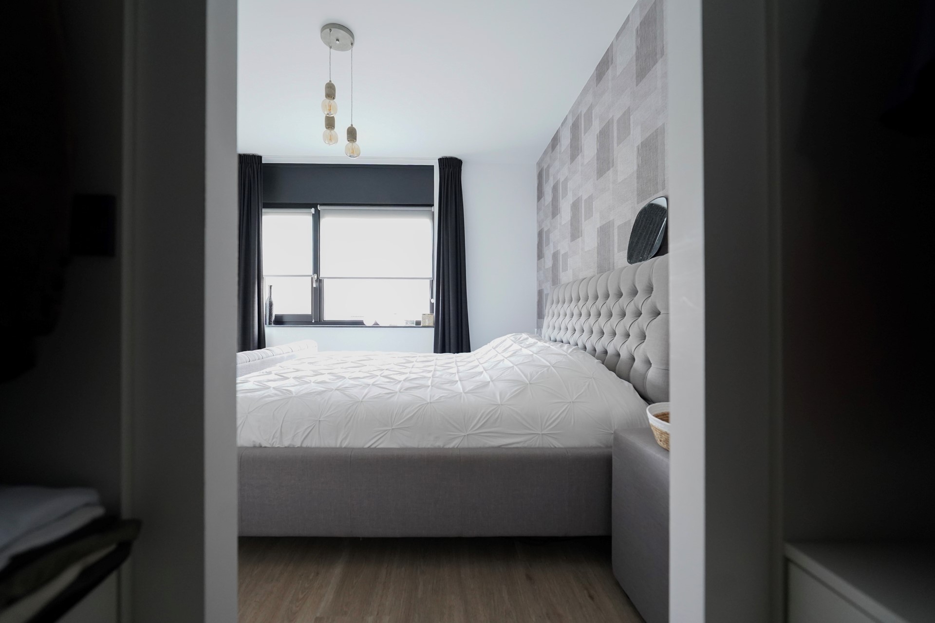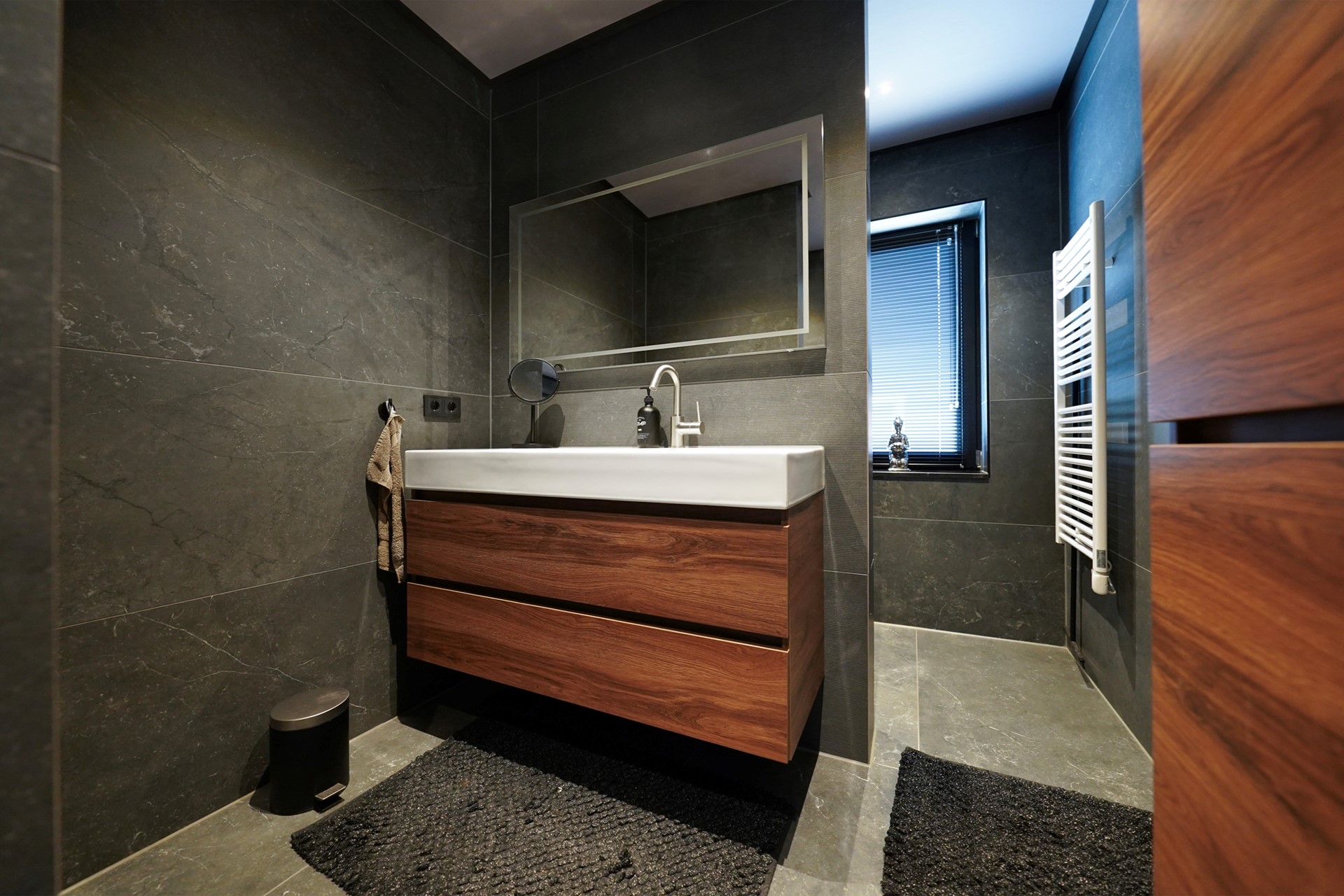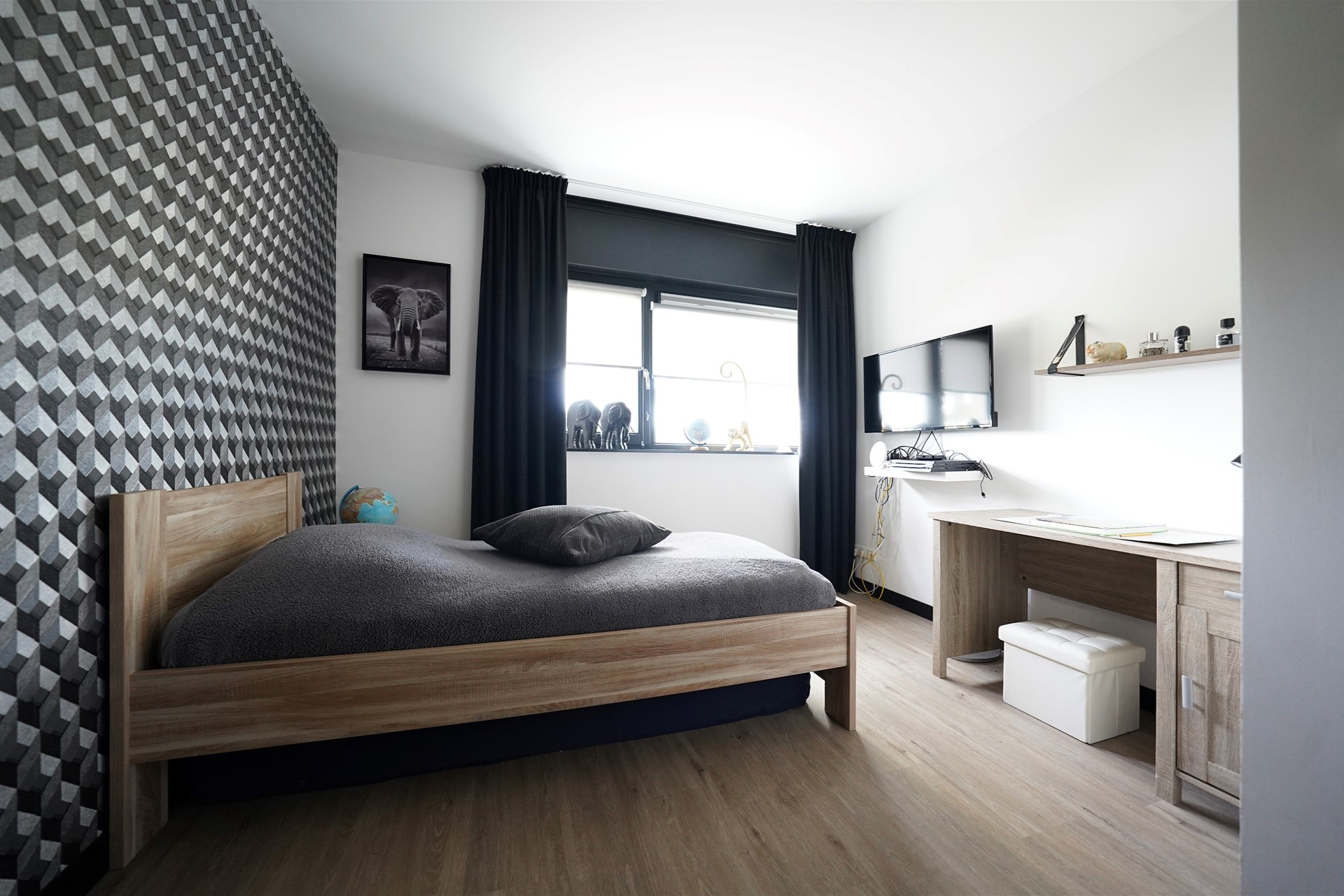Nu op naar boven, via de zwarte open trap naar een ruime overloop ook weer met een raampartij voor extra daglicht. Hier zijn 3 grote slaapkamers aanwezig. De masterbedroom is aan de achterzijde gesitueerd en deze is zelfs voorzien van een ruime inloopkast. Mooi gedaan! De badkamer is ook aan de achterzijde van de woning gesitueerd en voorzien van een bijzonder, speelse indeling. Nu is er een hele ruime inloopdouche mogelijk gemaakt, een ruime wastafelmeubel en een 2e toilet uiteraard. De badkamer is ook voorzien van ingebouwde geluidsboxen zodat je lekker mee kan zingen onder de regendouche.